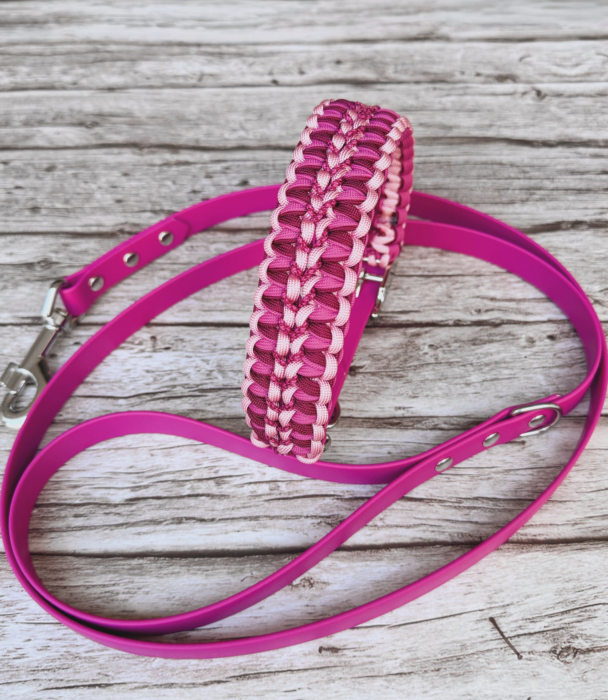 Our Apollo collars are made using strong, durable and flexible 550 paracord - a material perfect for dog collars. These collars are also complete with a Biothane adapter making them adjustable by 7cm. Input your dog's exact neck measurement and we will tailor the collar to fit them in the middle.